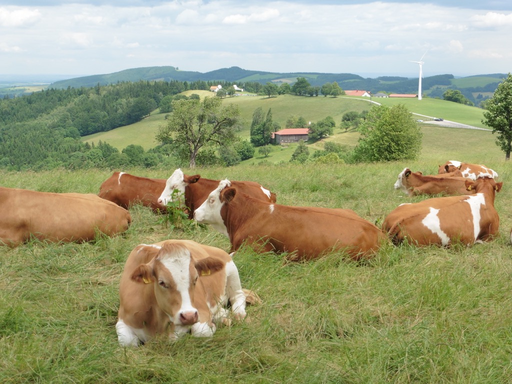Gegen Ende der Wanderung, auf dem Abschnitt zwischen der Ortschaft Steinriegl und dem Landgasthaus Scheiblingstein und in einem Wald, wo wir von den vielen Markierungen sowieso fast erschlagen werden, gibt es eine kleine Änderung. Nämlich noch mehr Markierungen in Form der hier abgebildeten vier gelben Pfeile. Für uns ändert sich dadurch nichts; wir bleiben auf dem blauen Weg Richtung Scheiblingstein, steigen dort in den Bus Richtung Neuwaldegg und machen uns dann schleunigst auf den Weg zur Jause bei der Frau Mama. Blumen nicht vergessen!  (ph)