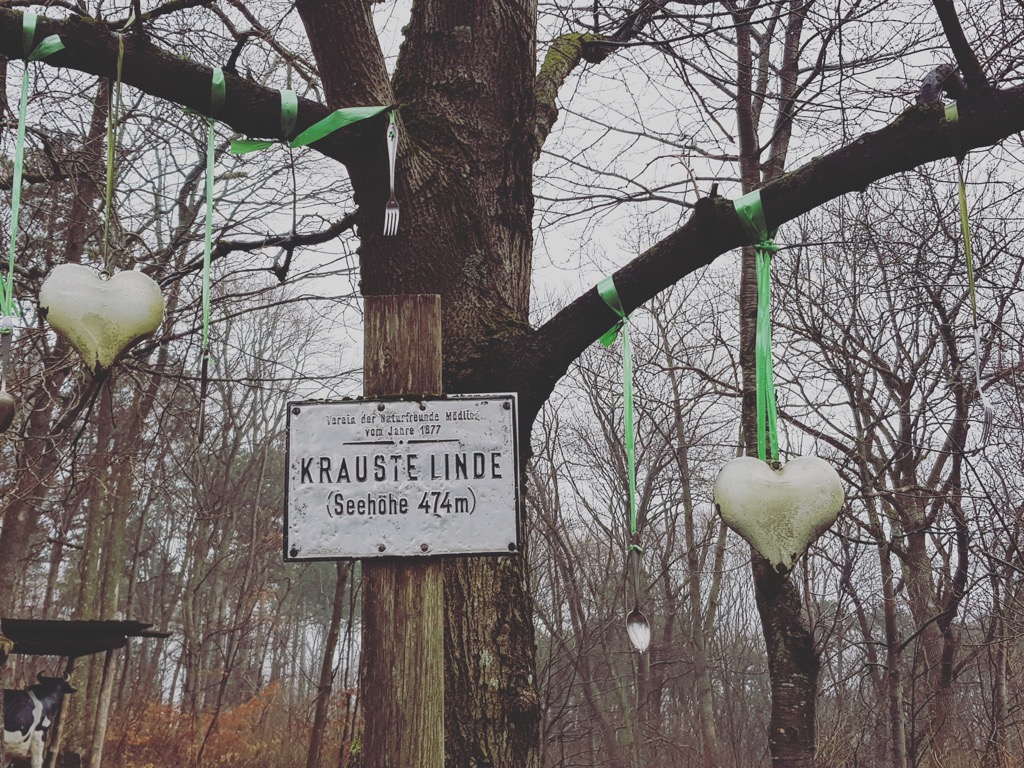 Aber vorher geht es noch weiter zur „Mutter des Wienerwalds“, einer etwa 350 Jahre alten Eiche – im an Eichen mittlerweile leider recht armen – Naturpark Eichenhain, die (teilweise ausgehöhlt) dort oben immer noch mutig ihre Frau steht und geduldig über diesen Teil des Wienerwalds wacht. Zur Abwechslung wollen wir an diesem denkwürdigen Tag auch sie einmal ehren.